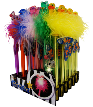 Jiggly Light-Up Pen lights-up when you write. Batteries are included with all items.
