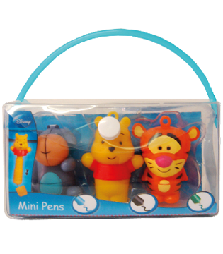 Mini Pens come as cute characters on a keychain. Remove the cap at the bottom and a pen drops down.