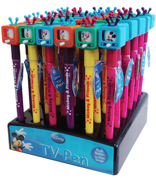 The TV Pen features a TV-shaped topper with images inside and a button on the front. Press the button to see the various images.