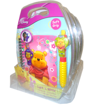 Set consists of A6 Notebook, Cushy Pen and Flashlight Keyring.